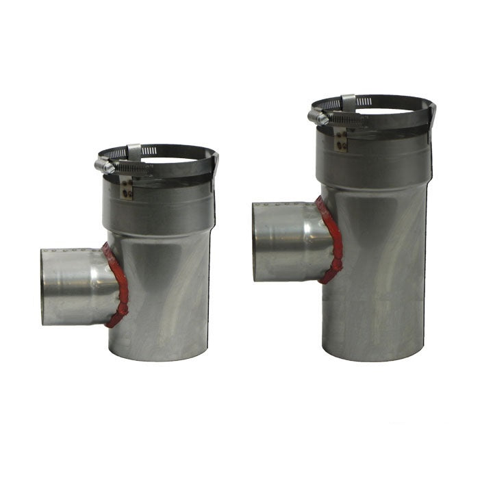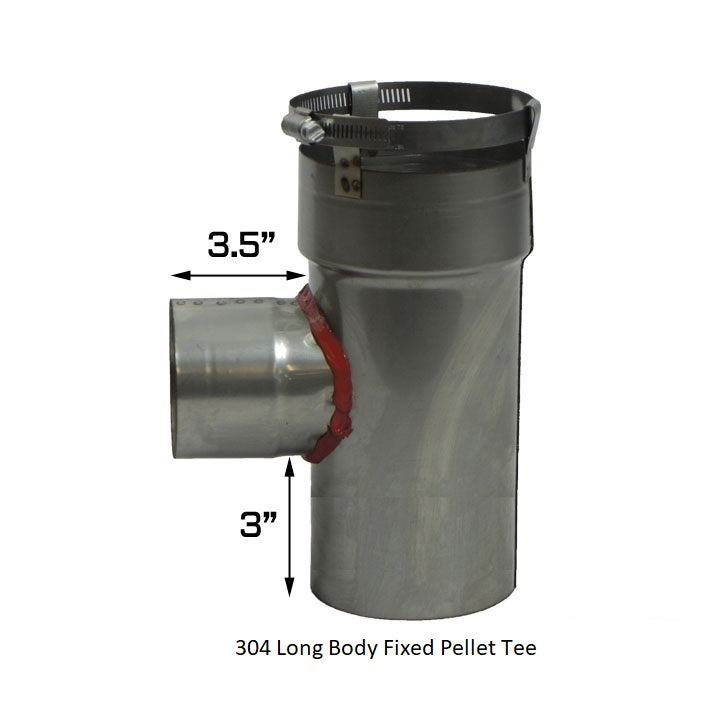Connects either a 3" or 4" pellet stove outlet to a 3" or 4" liner. This connector has a 3" or 4" fixed snout with a quick connect band. The clean out cap is included.