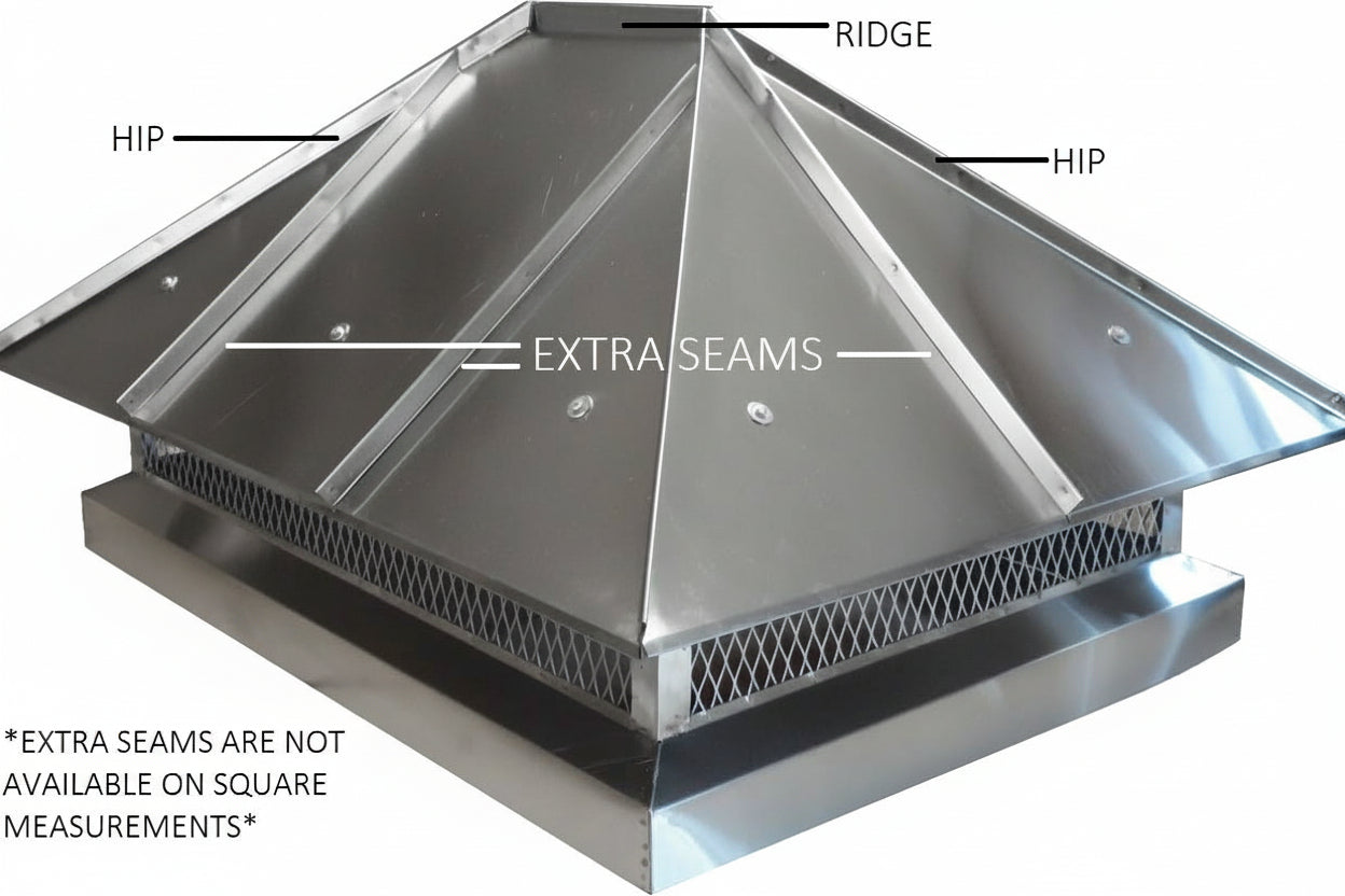 Fireside Chimney Supply carries the largest variety of multi flue caps in the industry. These multi flue caps have a unique Hip and Ridge chimney cap top with a skirt design that is easily attached to the outside of the chimney. The Hip and Ridge top has a 10/12 pitch with a 3 3/4" overhang. Easily attaches to the outside of the chimney with masonry screws.